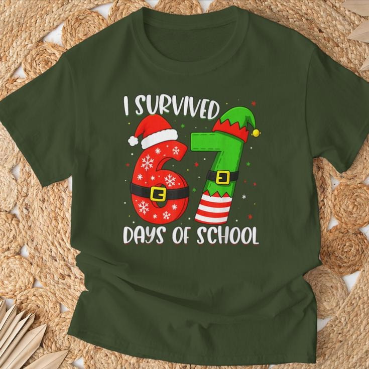 Rushgleam I Survived 67 Days Of School Christmas T-Shirt Humor Clothing Gift Ideas For Teens