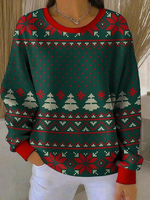 Rushgleam Christmas Tree Sweater Xmas Apparel Printed Snow Graphic Unique Gifts For Her