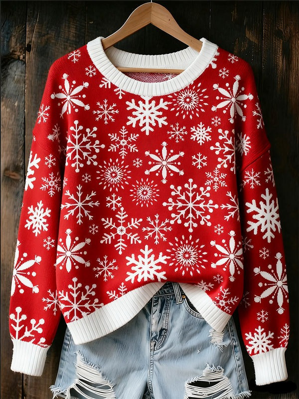 Rushgleam Snowflakes Christmas Sweater Cozy Holiday Cute Apparel Xmas Gifts For Girlfriend