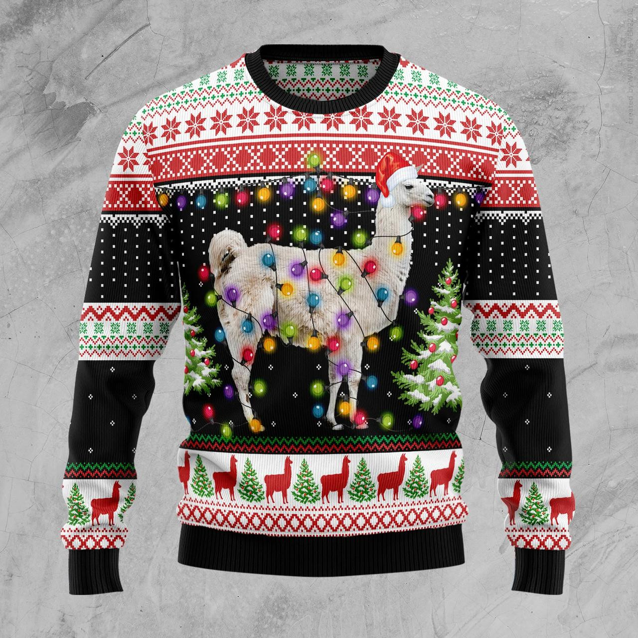 Rushgleam Llama Wrapped String Lights Ugly Christmas Sweater Cute Winter Clothing Llama Gifts For Her