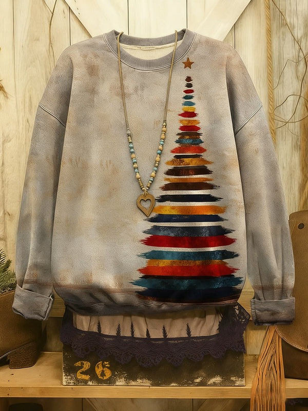Rushgleam Christmas Tree Sweatshirt Colorful Tree Great Xmas Clothing Gifts For Girlfriends