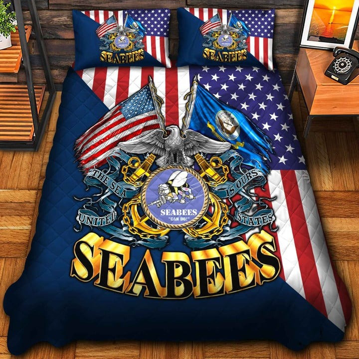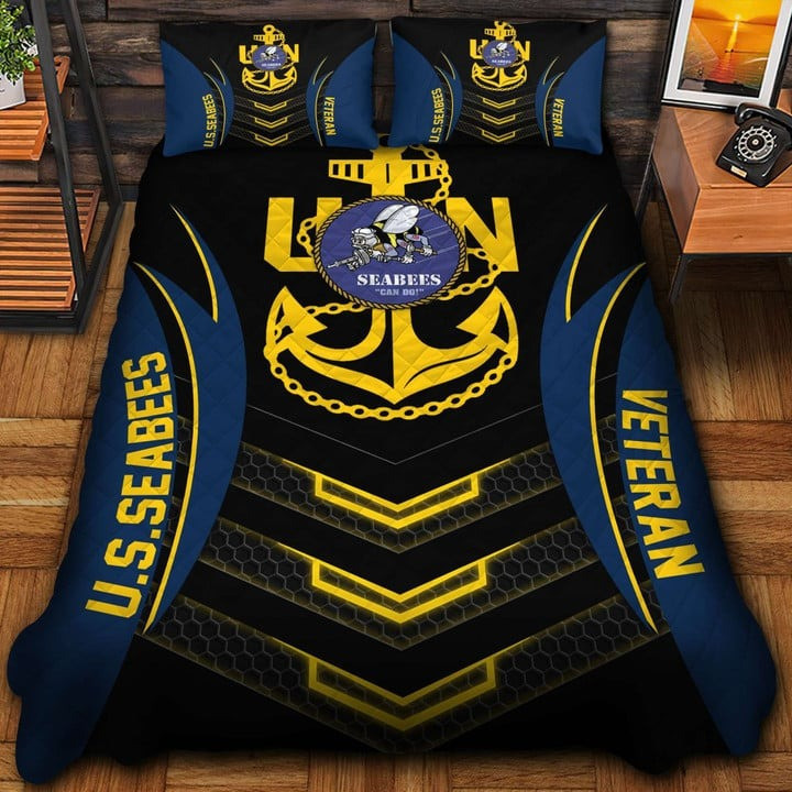 Rushgleam U.S Seabees Veteran Quilted Bedding Set Duvet Cover Bedspread Bedroom Decor Gifts For Wife