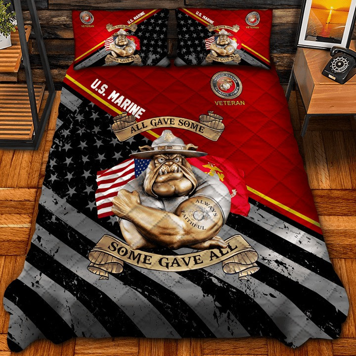 Rushgleam U.S.Marine Veteran Quilted Bedding Set Duvet Cover Bedspread Some Gave All Military Gift Ideas