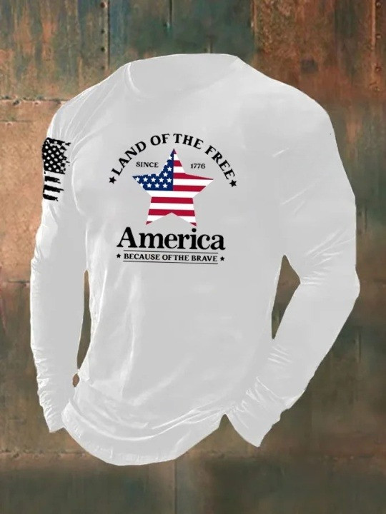 Rushgleam Land Of The Free Long Sleeve Shirt Home Of The Brave Star America Flag Veteran Merch Gifts