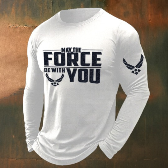 Rushgleam U.S Veteran Merch Long Sleeve Shirt May The Force Be With You Proud USAF Gift Ideas