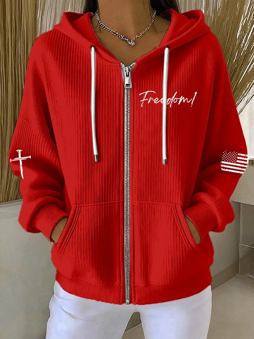 Charlie Kirk Freedom Zip Hoodie Cross USA Flag Christian Outfit Gifts For Girlfriend