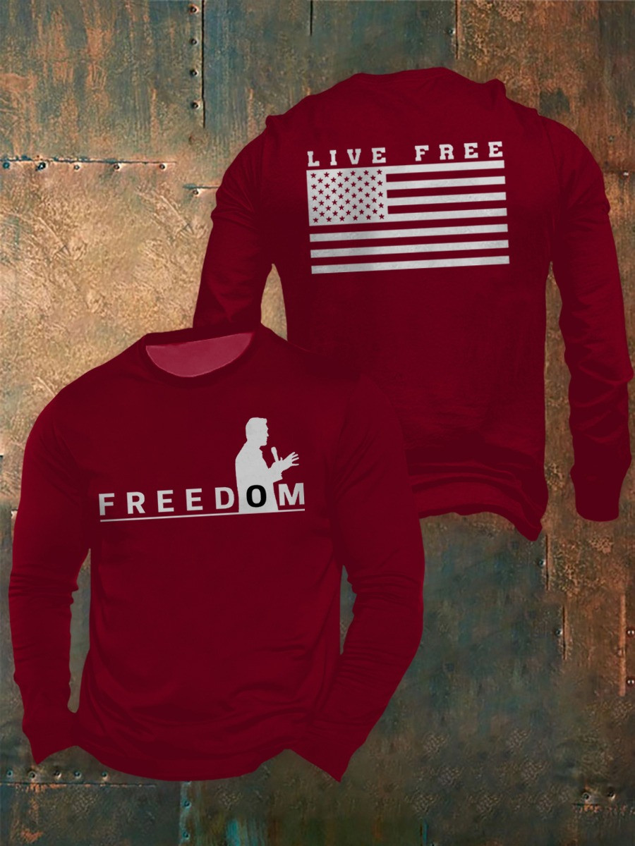 Freedom Live Free Long Sleeve Shirt Patriotic American Flag Presents For Men.