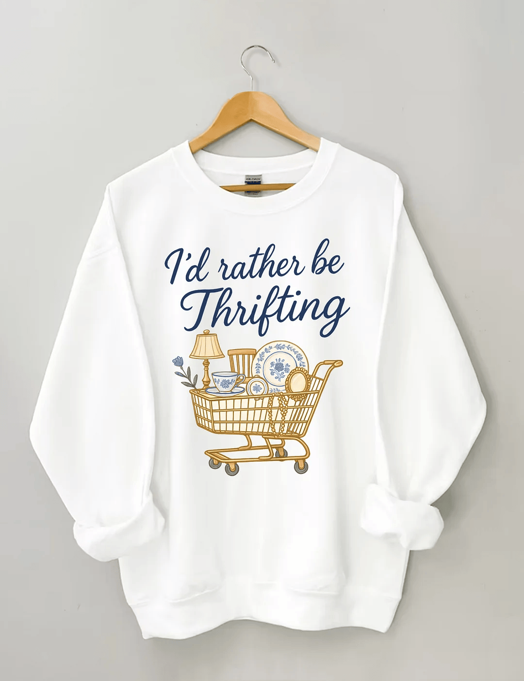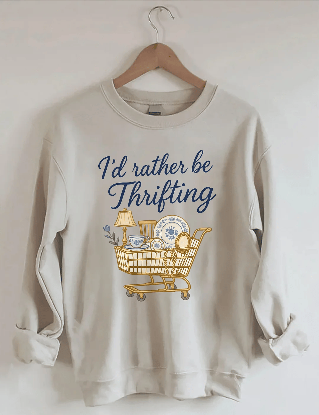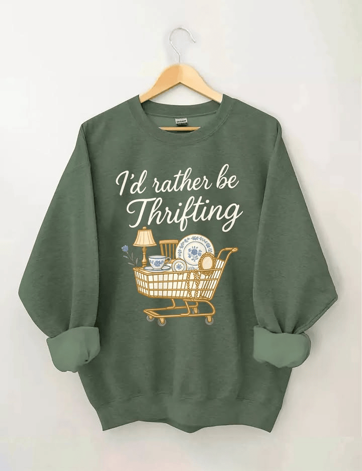 I’d Rather Be Thrifting Sweatshirt Vintage Lover Graphic Top Gift for Thrifting Lovers