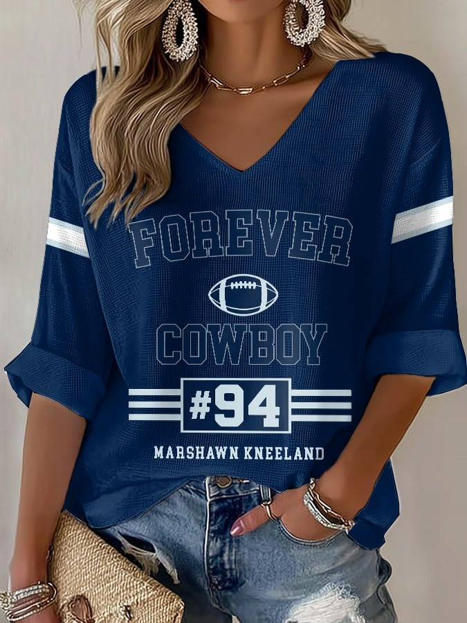 Marshawn Kneeland V-Neck Long Sleeve Shirt Cowboy Kneeland Tribute Clothing Fan Gifts.