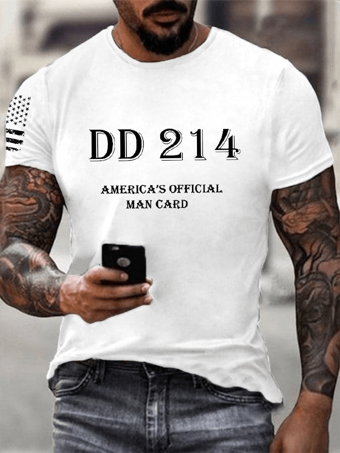 Men’s DD214 America’s Official Man Card T-Shirt USA Veterans Day Outfit Dad Gift