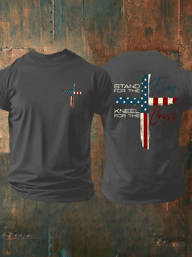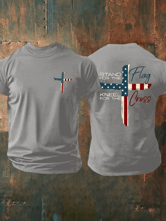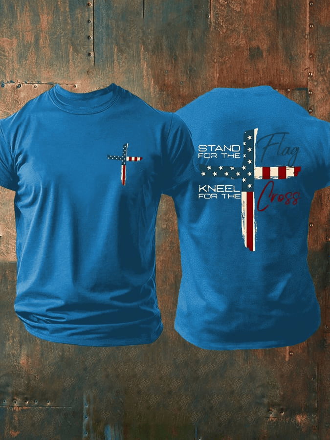 Men’s Stand For The Flag Kneel For The Cross T-Shirt Christian Shirt Gift for Son.
