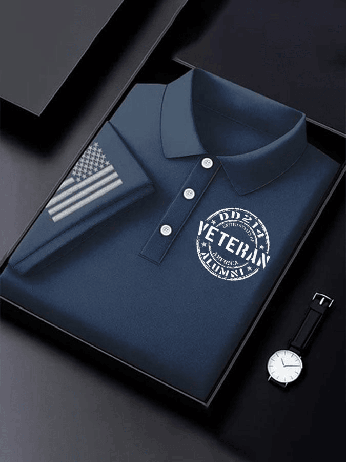 Men’s Veteran Print Polo Shirt Patriotic Veterans Day Shirt Gift for Men