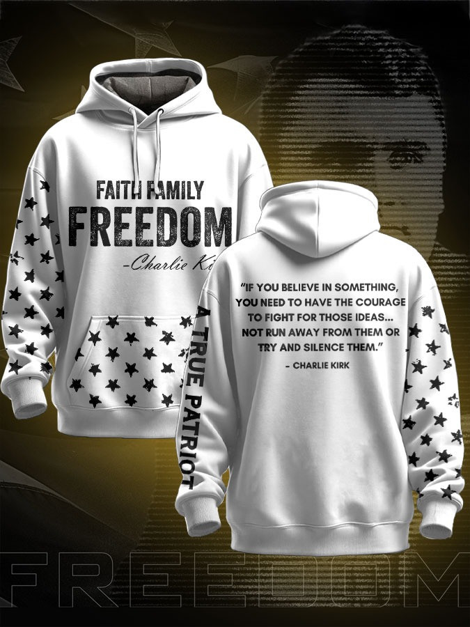 Rushgleam Charlie Kirk Faith Family Freedom Hoodie A True Patriot Outfit Memorial Gifts For Him