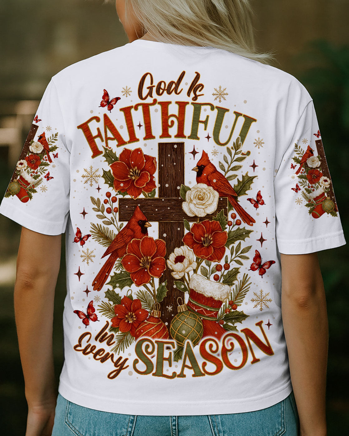 Rushgleam Cross Jesus Is The Light Christmas T-Shirt Christian Holiday Tee Great Jesus Christ Gifts