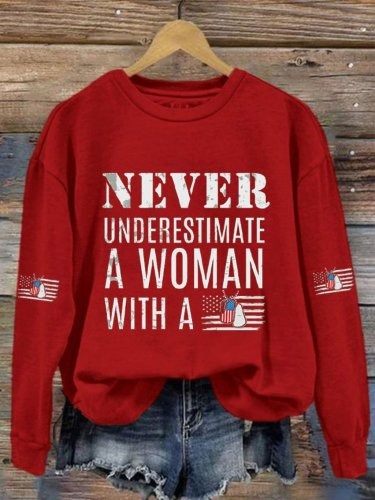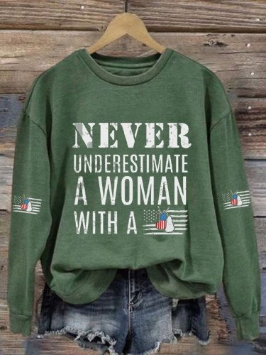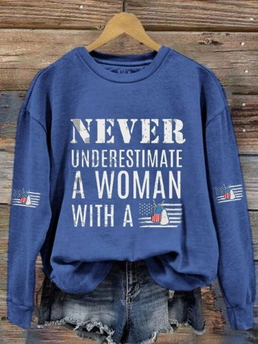 Rushgleam Never Underestimate A Woman Sweatshirt With A DD-214 Veterans Day Ideas Merch
