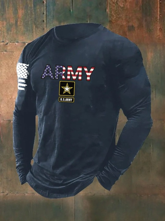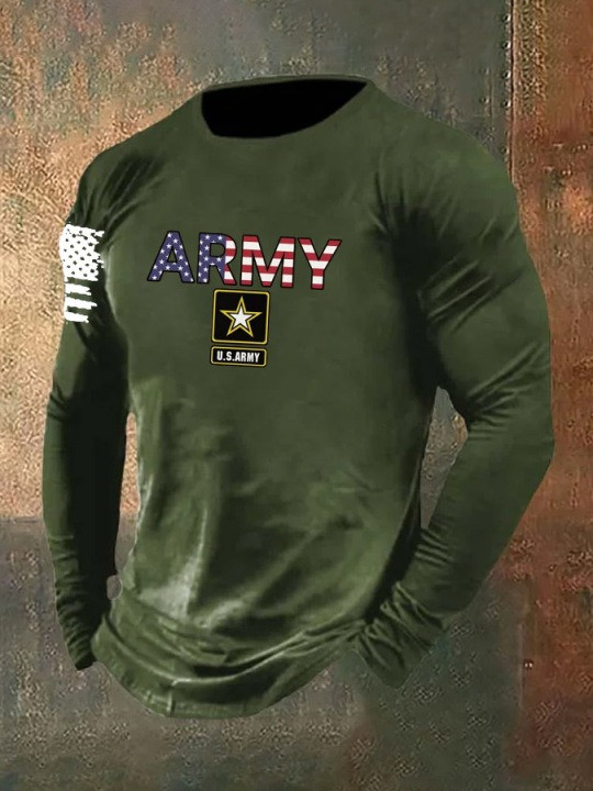 Rushgleam United States Army Men’s Veteran Long Sleeve U.S ARMY American Flag Veteran Gift Ideas