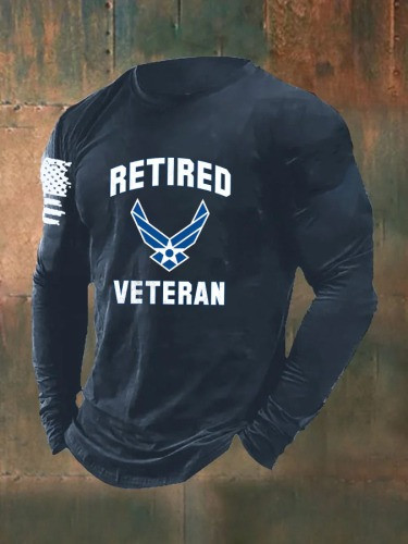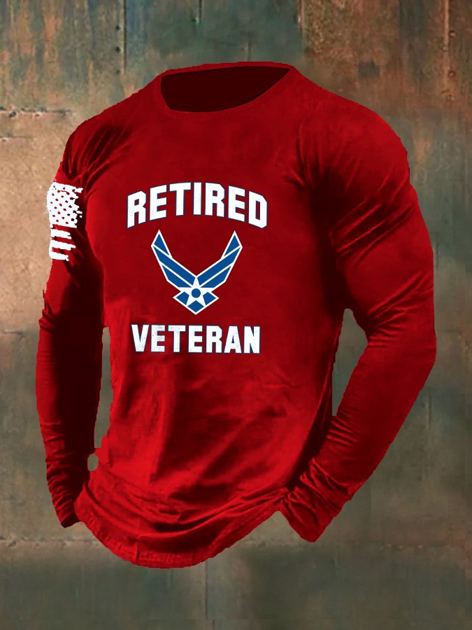 Rushgleam United States Long Sleeve Shirt Retired Veteran American Flag Patriotic Clothing Gifts