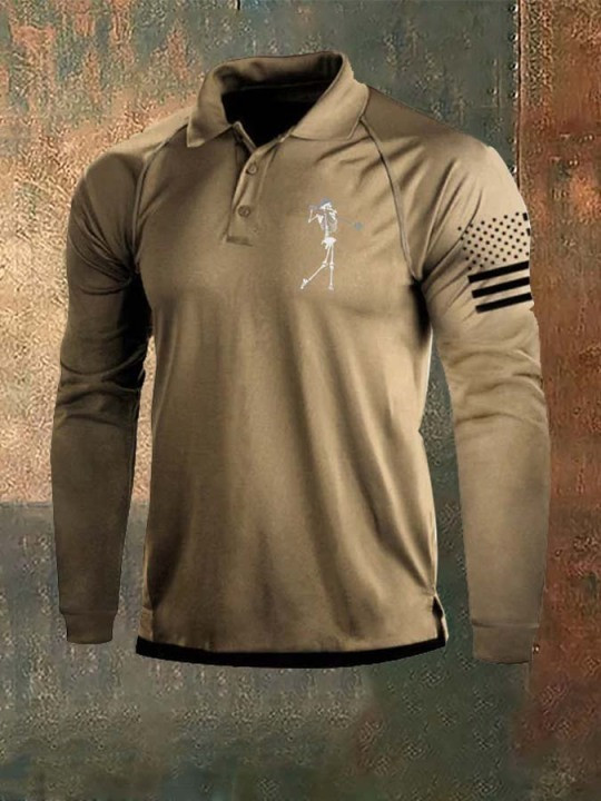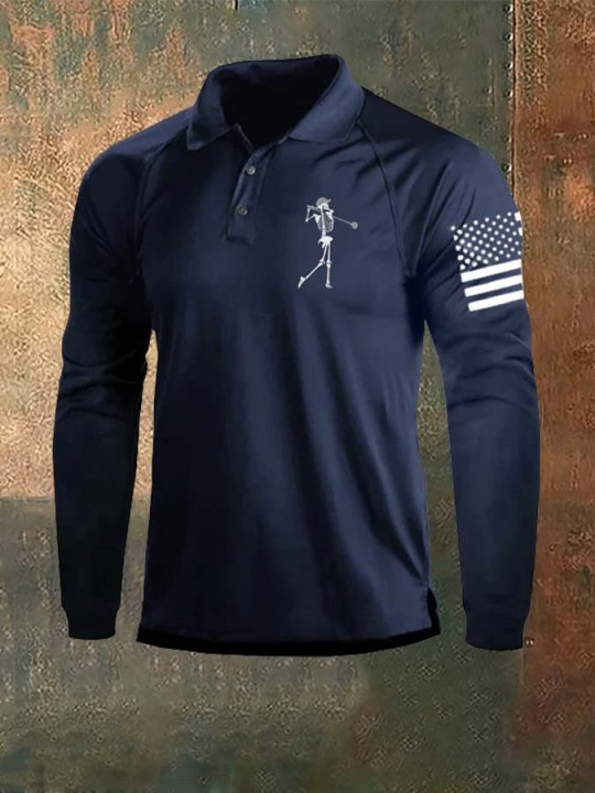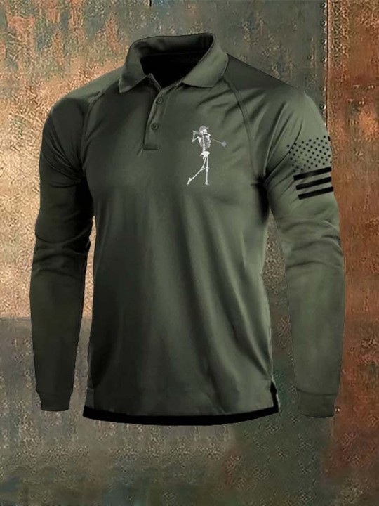United States Veteran Long Sleeve Polo Shirt Soldier Skull American Flag Clothing For Patriots.