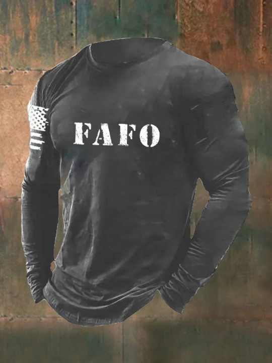 Rushgleam United States Veteran Men’s Long Sleeve Shirt FAFO America Flag Veteran Gift Ideas