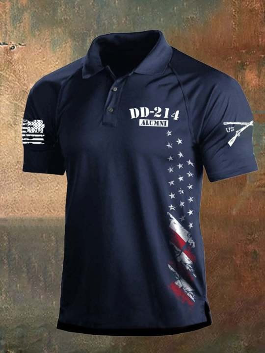 Rushgleam United States Veteran Polo Shirt DD 21 Alumni American Flag Military Clothing