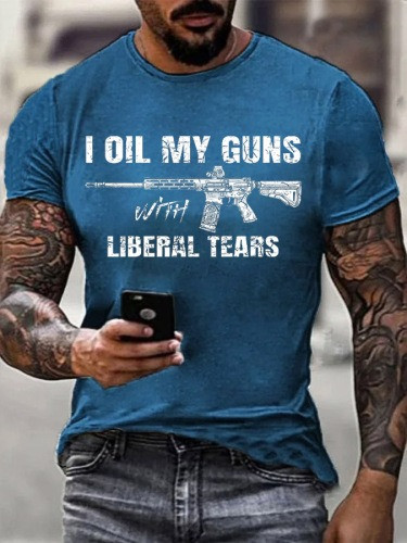 Rushgleam United States Veteran T-Shirt I Oil My Guns With Liberal Tears Military Tee Presents