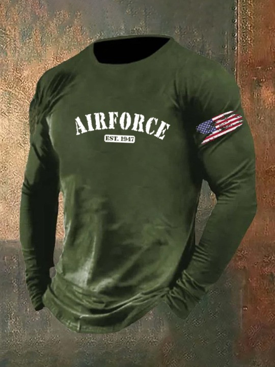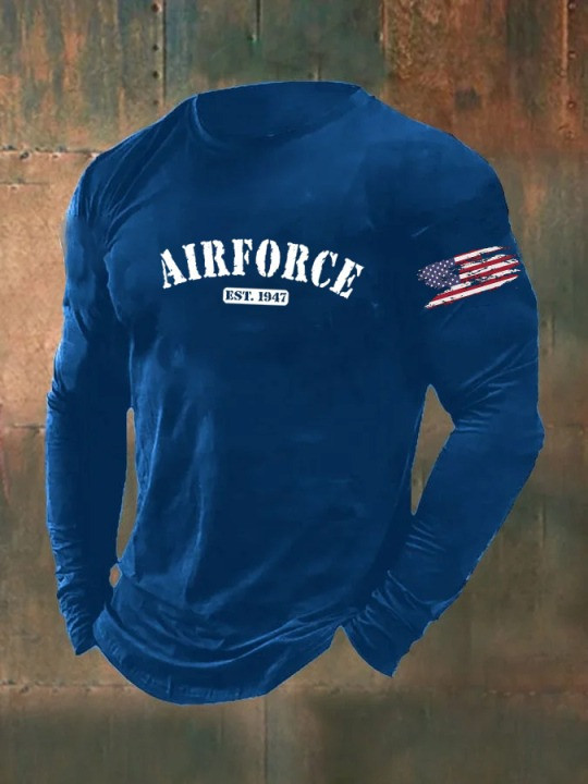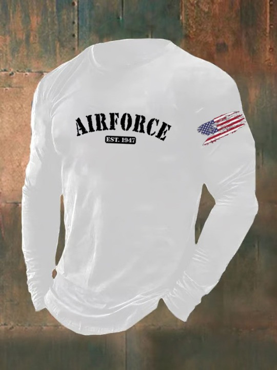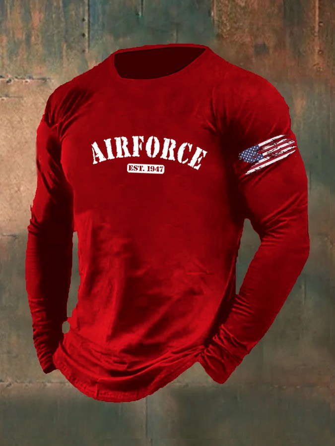 Rushgleam US Air Force Veteran Men’s Long Sleeve Shirt EST 1947 America Flag Shirt Memorial Gifts
