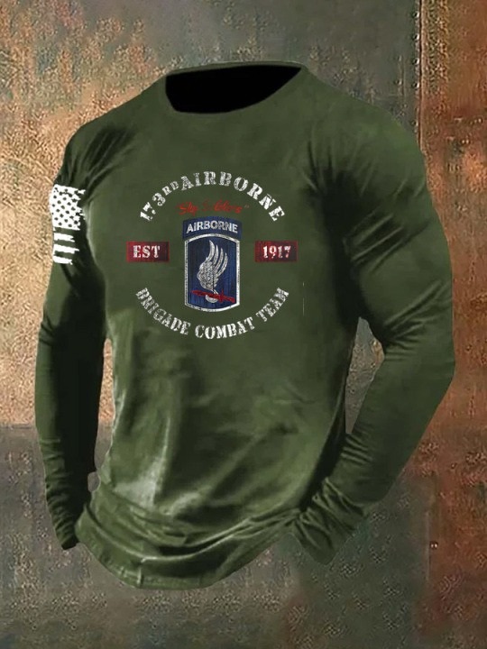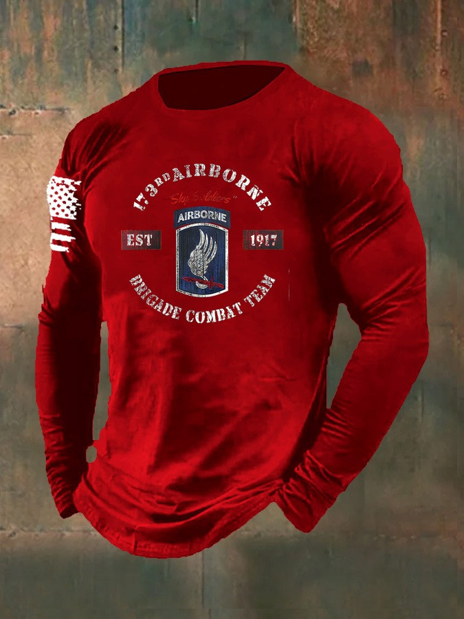 Rushgleam U.S Veteran Long Sleeve Shirt 173Rd Airborne Brigade Combat Team Patriotic Gift Ideas