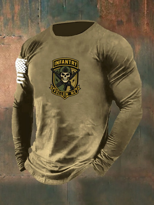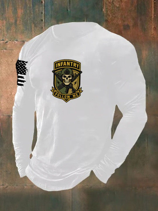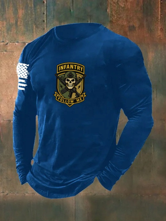 US Veteran Long Sleeve Shirt Infantry Follow Me Pattern Military Clothing Patriotic Gifts.