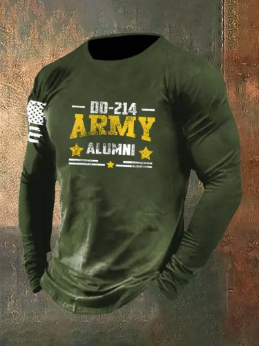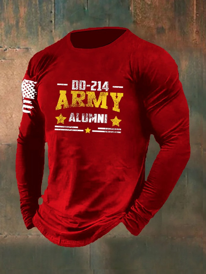 Rushgleam Veteran DD 214 Army Alumni Long Sleeve Shirt Military Apparel Gifts For Men