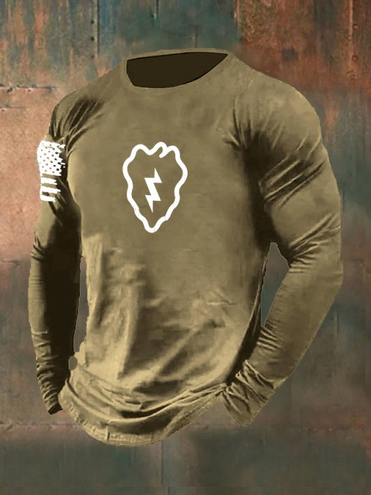 Veteran Long Sleeve Shirt Infanterie Divisie Pattern USA Flag Military Outfit Gifts For Men.