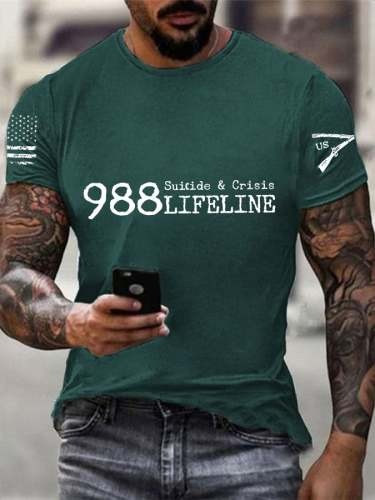 Rushgleam Veteran Men’s T-Shirt 988 Suicide And Crisis Lifeline Military Clothing Gifts For Him