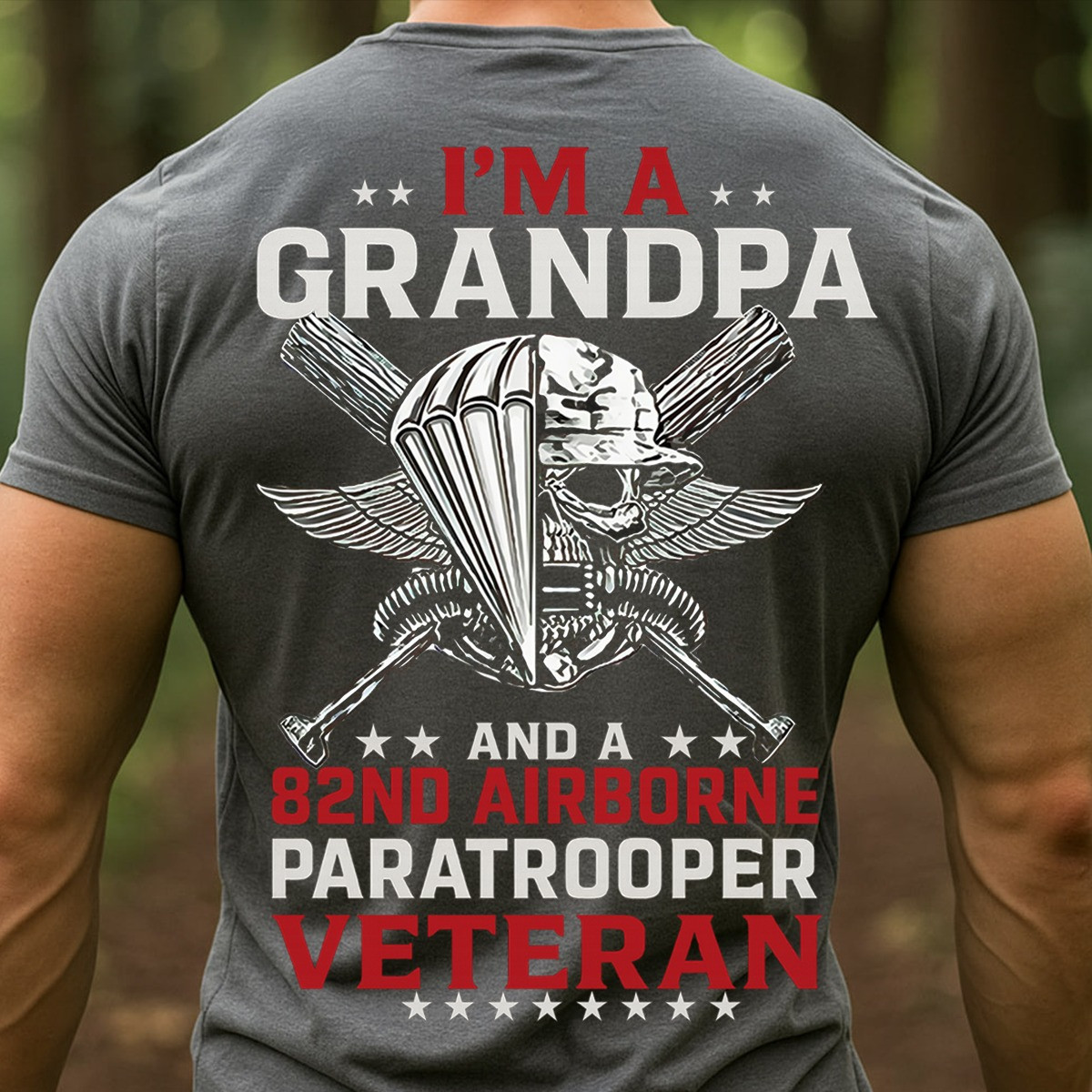 Skull 82nd Airborne Veteran T-Shirt I’m A Grandpa U.S. Army Paratrooper Veteran Tee Presents