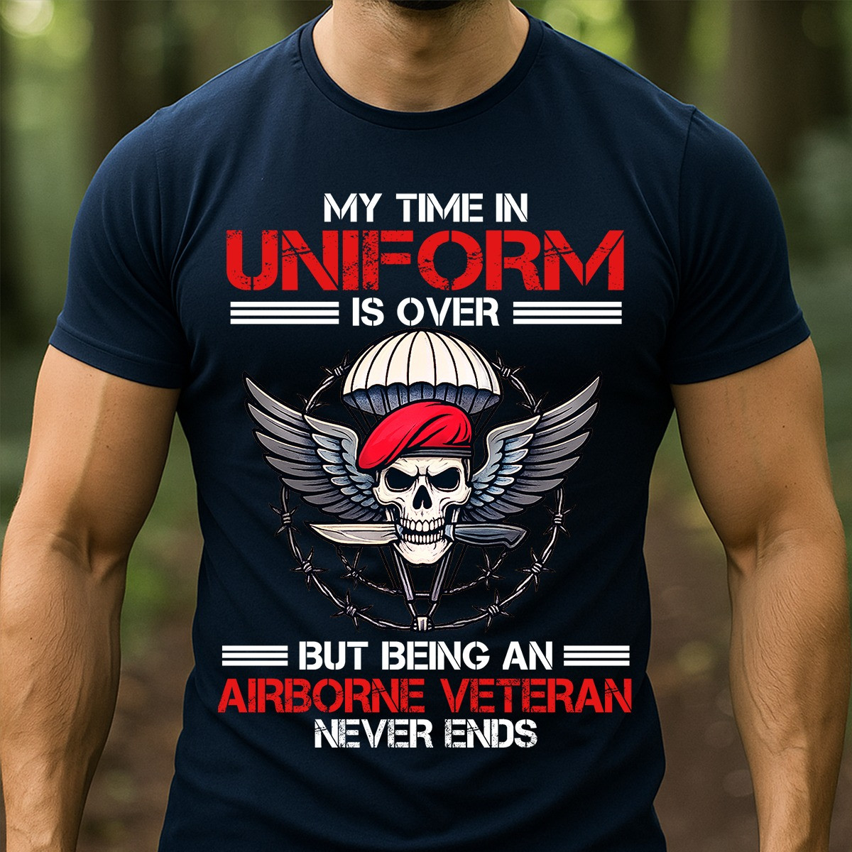 Skull Airborne Veteran T-Shirt My Time In Uniform Proud Airborne Tee Military Presents.