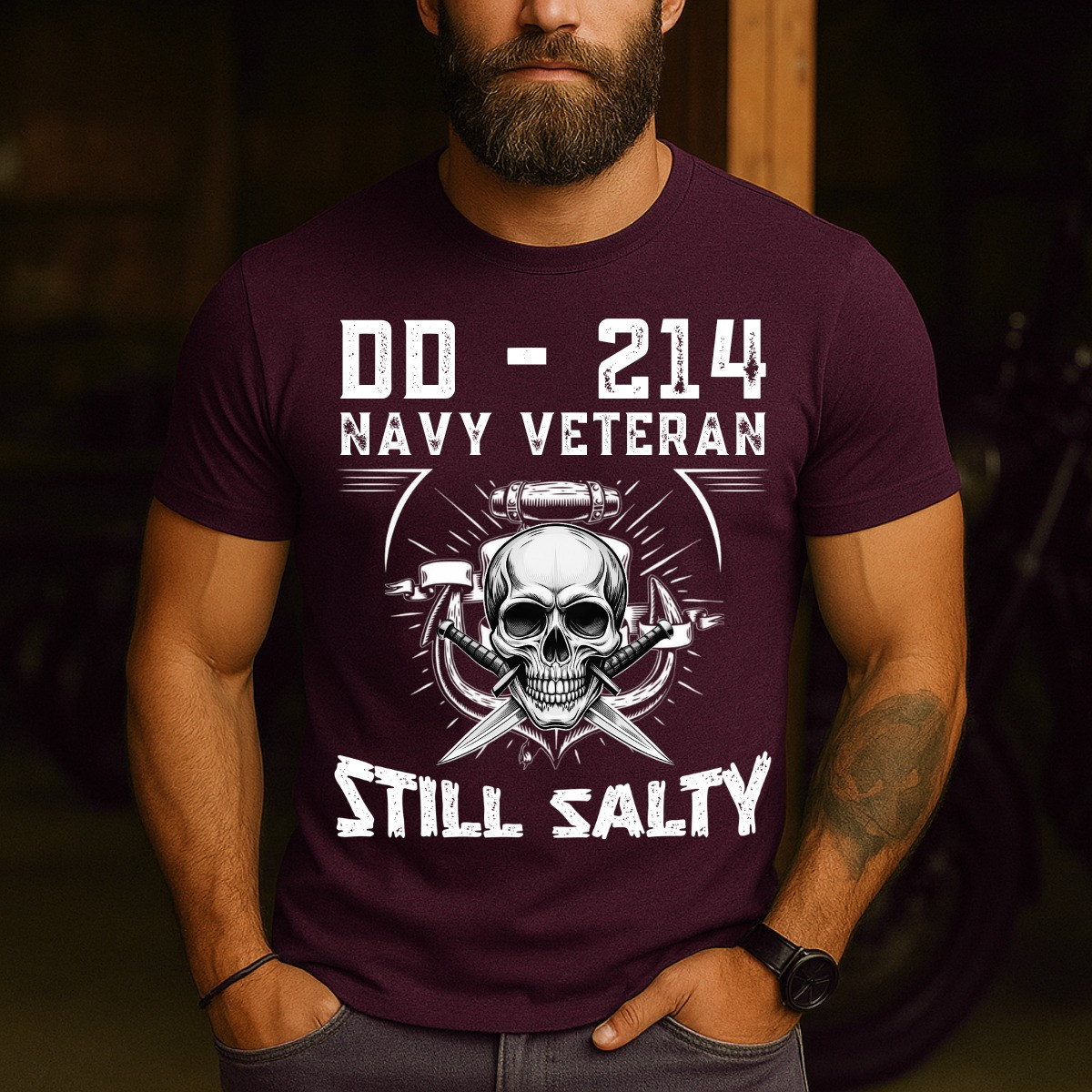 Skull DD-214 Navy Veteran T-Shirt Still Salty Proud US Veteran Apparel Presents For Men