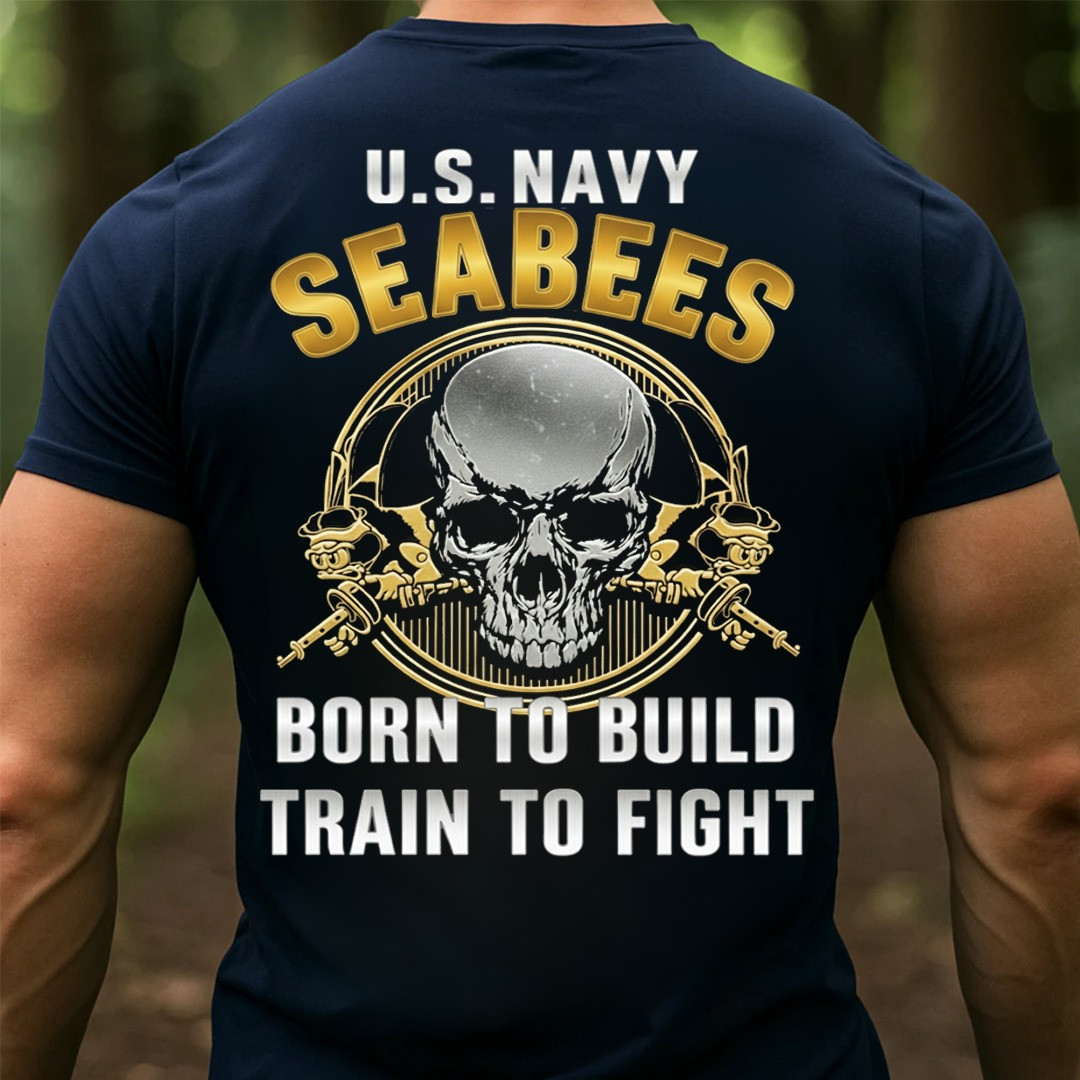 Skull U.S. Navy Seabees Veteran T-Shirt Born To Build Trained To Fight Veteran Pride Tee Gifts