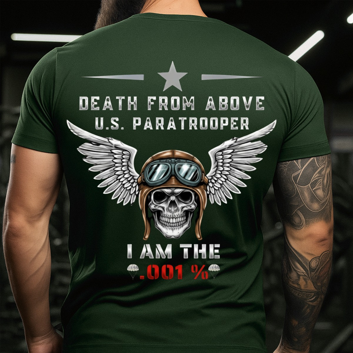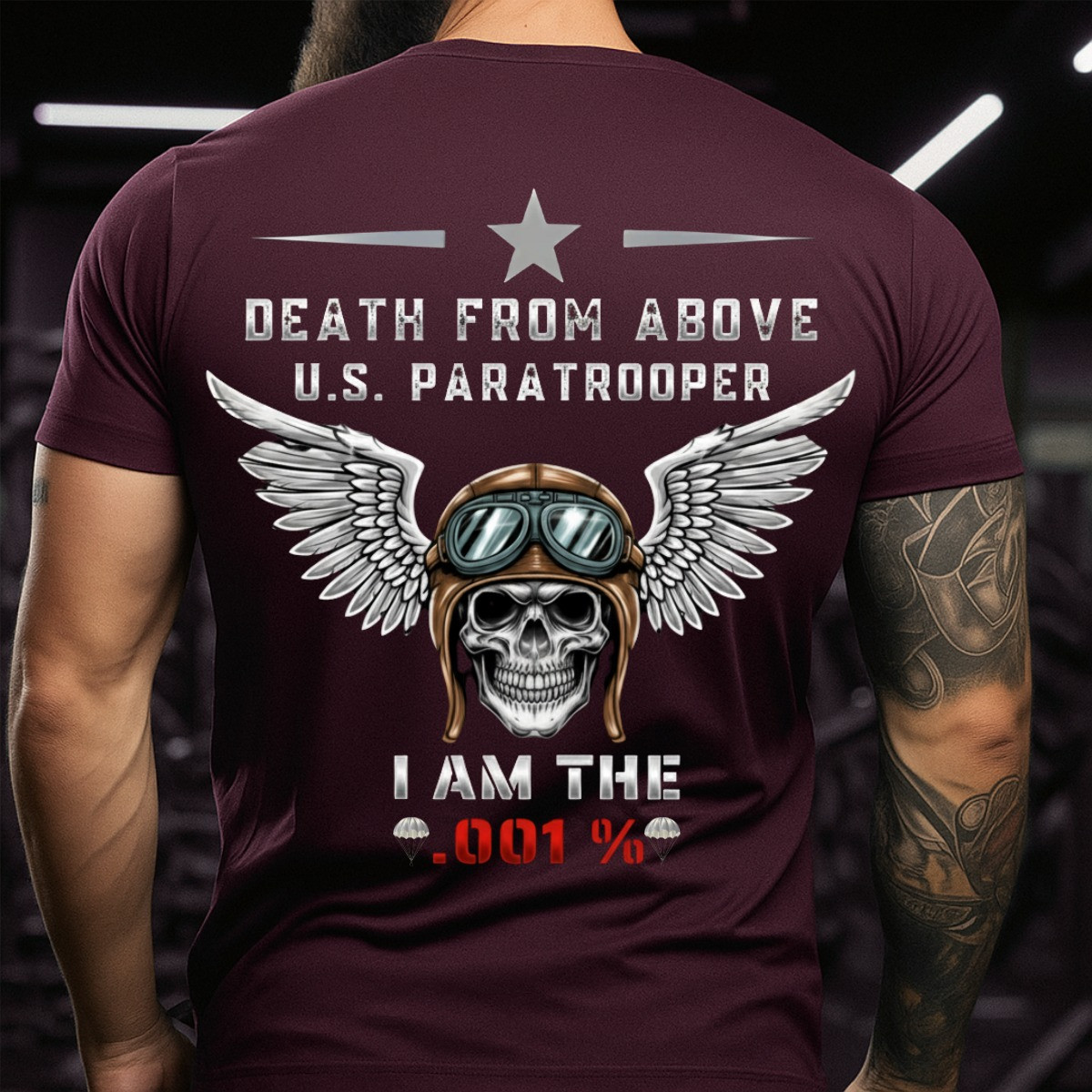Skull Wings Paratrooper Veteran T-Shirt Death From Above .001% Military Airborne Tee Gift Ideas