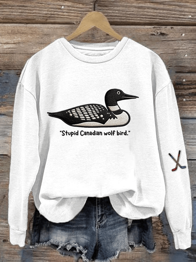 Stupid Canadian Wolf Bird Print Sweatshirt Hockey Romance Crewneck Gift for Her