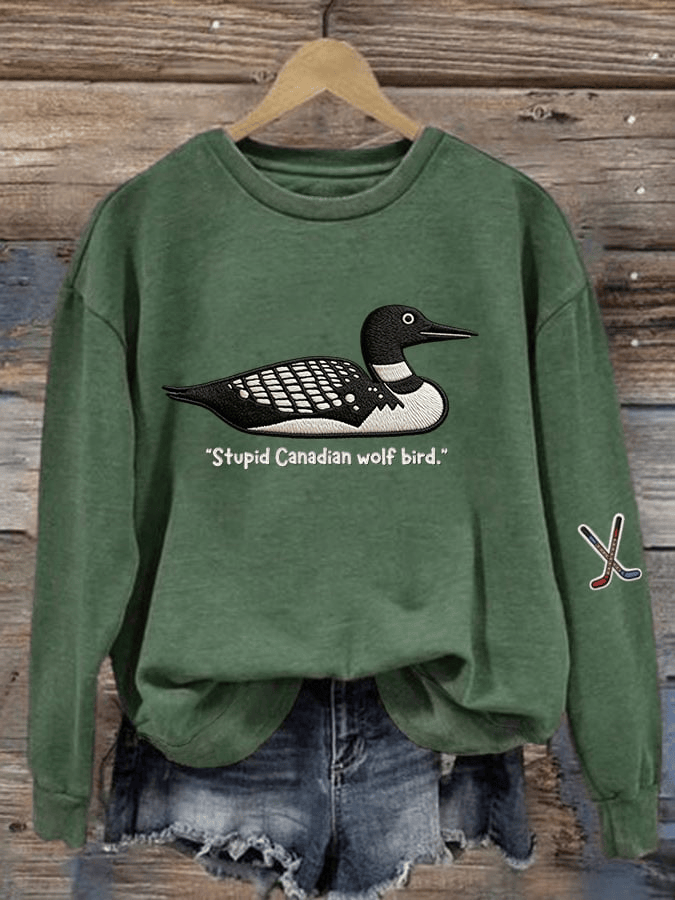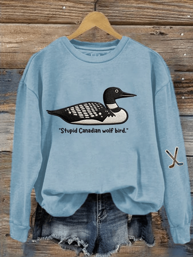Stupid Canadian Wolf Bird Print Sweatshirt Hockey Romance Crewneck Gift for Her.