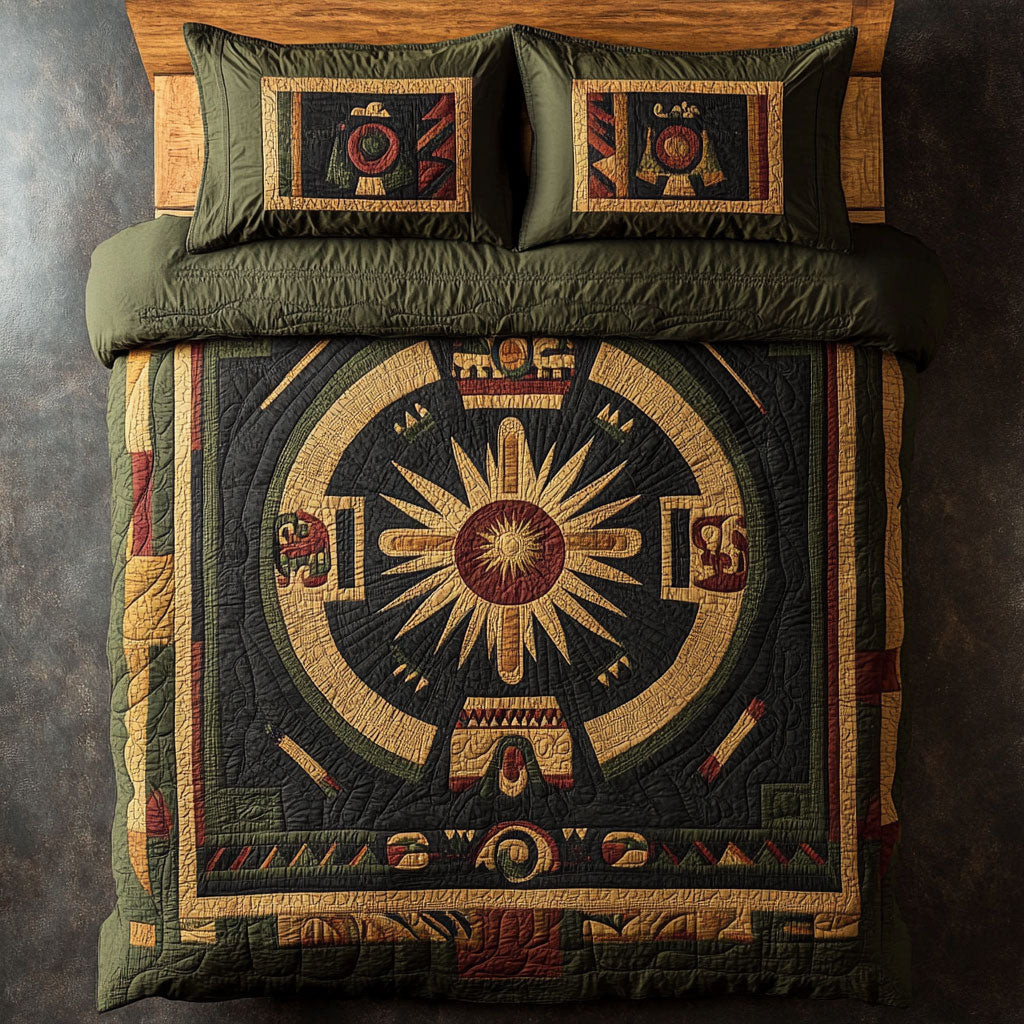 Aztec Tribal Symbols Quilted Bedding Set Duvet Cover Bedspread Present Ideas For Her
