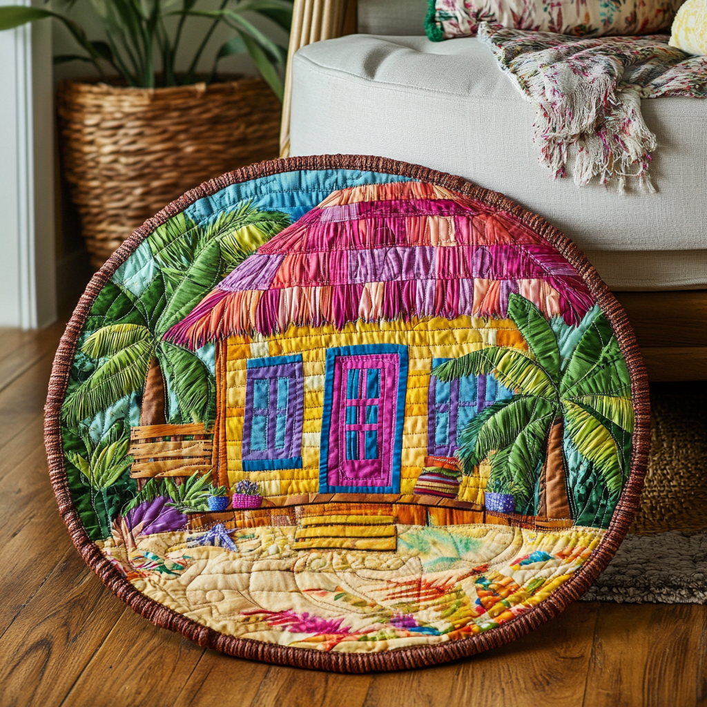 Azure Oasis Quilted Round Mat Large Round Mat Special Birthday Gifts For Mom