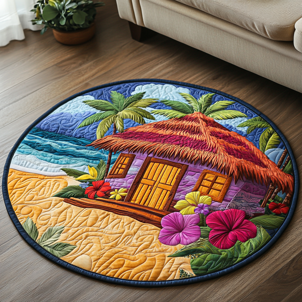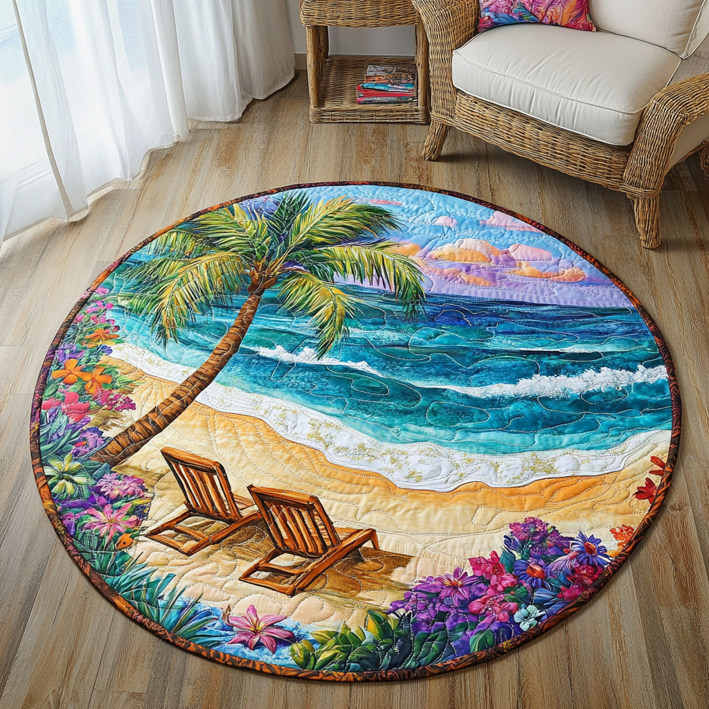 Beach Bliss Quilted Round Mat Round Floor Mat Birthday Gifts For Beach Lovers