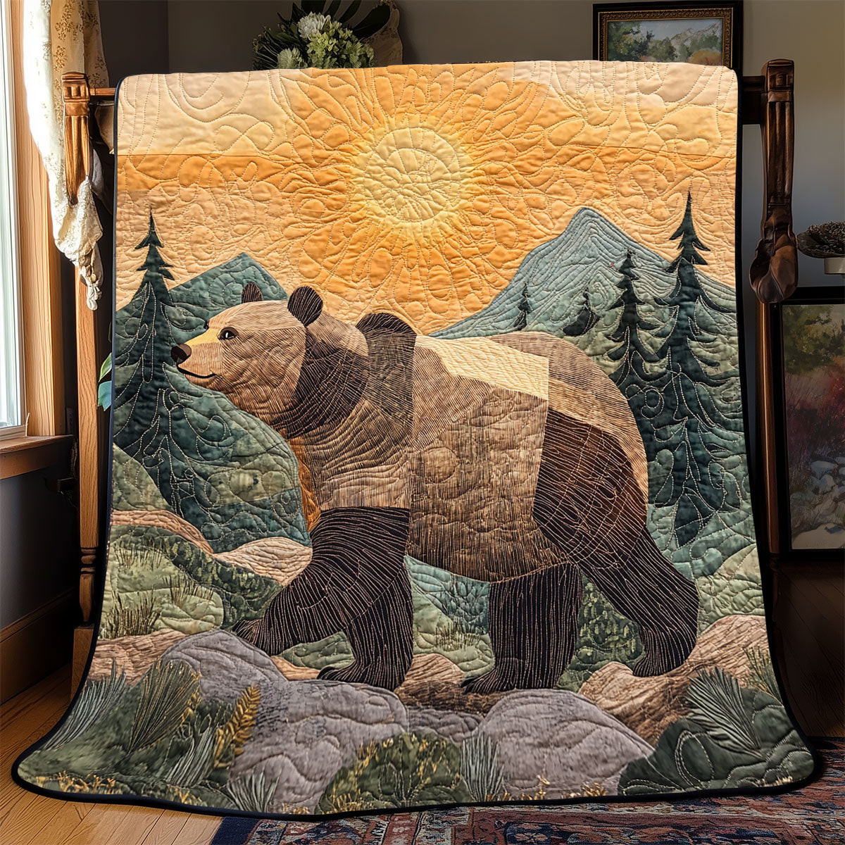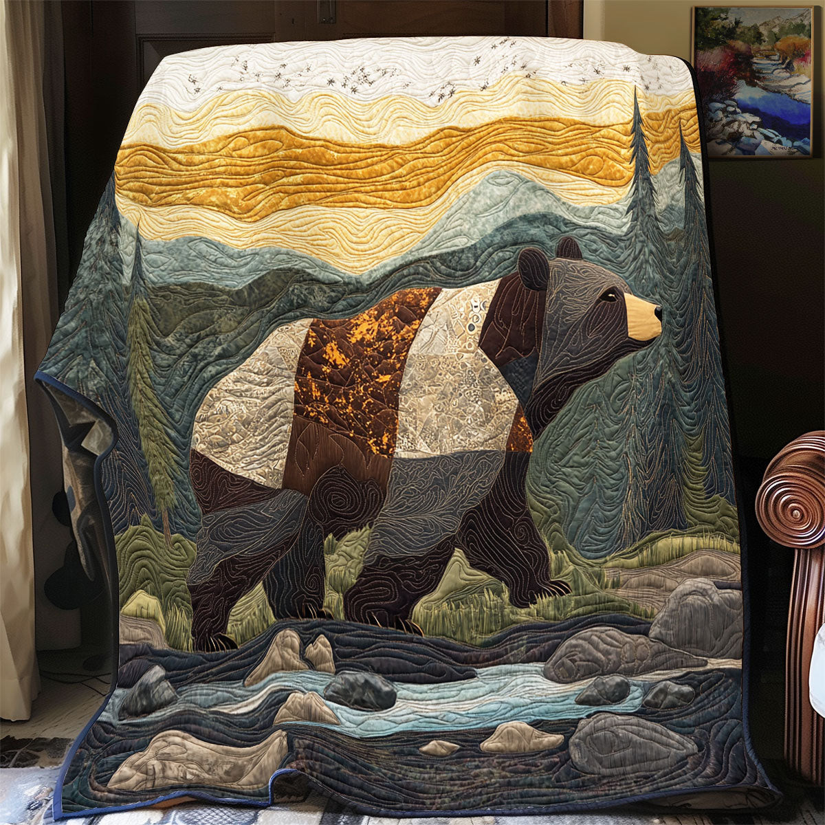 Bear Mountain Trail Quilted Sofa Cover Home Decoration Gift For People Who Like Bear