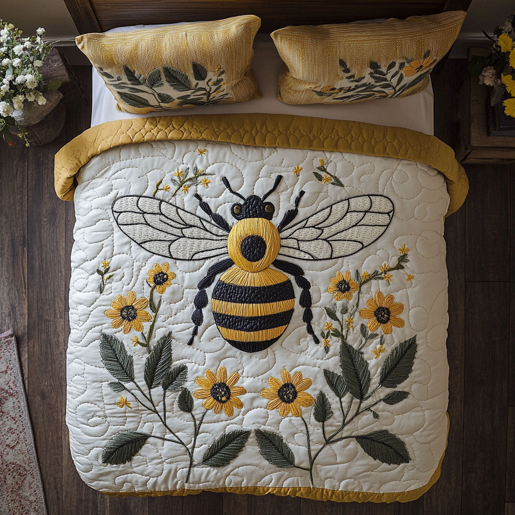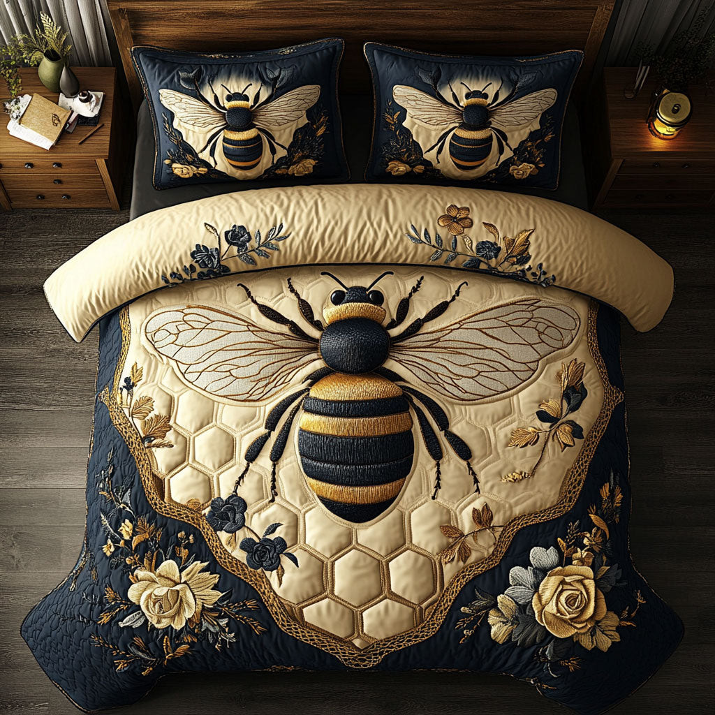 Bee Honeyed Sunlight Quilted Bedding Set Duvet Cover Bedspread Present Ideas For Her
