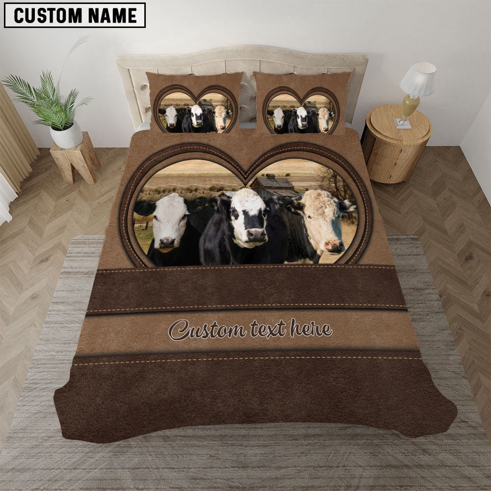 Black Hereford In Heart Custom Name Farm Bedding Set Thoughtful Wedding Gifts